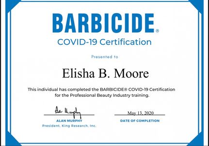 Cleanliness has always been a top priority for me. Following Barbicide and The Professional Beauty Industry's high standard of disinfection guidelines to keep our salon environment safe.
